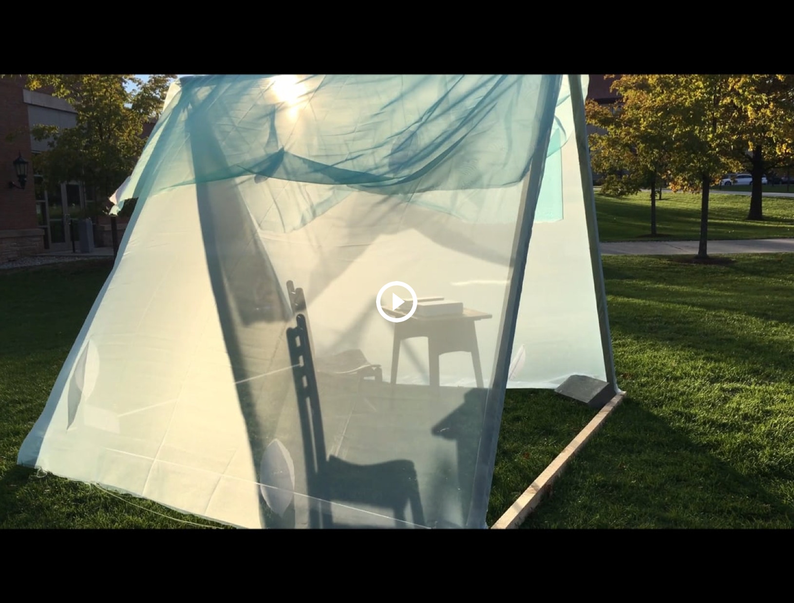 A participatory installation containing the book The Falling Sky: Words of a Yanomami Shaman by Davi Kopanawa Yanomami and Bruce Albert set next to a companion object: a booklike box as a recording device inviting the tent visitor to contribute her/his own narrative about their relationship to nature. Video documentation below.